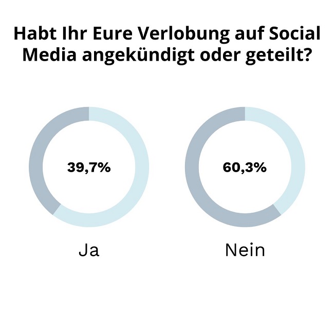 - 39,7 Prozent aller Paare teilen ihre Verlobung auf Social Media (-3,8 Prozent weniger als 2022).