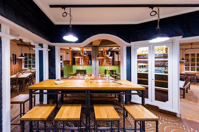 Remscheider Bräu - Innenansicht der gastlichen Brauereigaststätte mit eigener Hausbrauerei