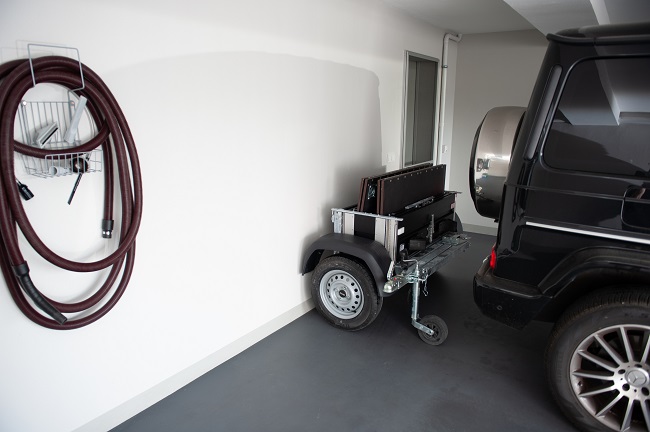 Dank seines Platzspar-Prinzips passt der FALTOS Autoanhänger in jede Garage und jeden Unterstand.