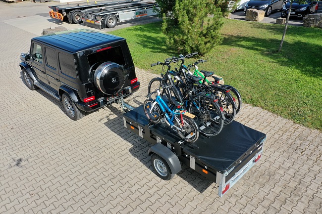 Praktisches Zubehör: Halterungen für Motorräder und E-Bikes bis hin zu verschiedenen Planen und Ladungssicherungsnetzen machen den FALTOS multifunktional einsetzbar.