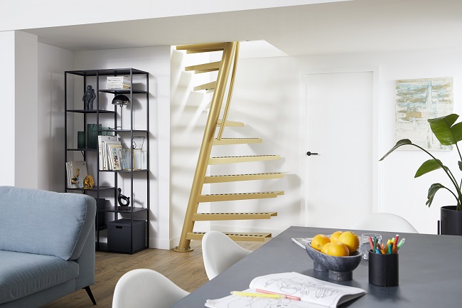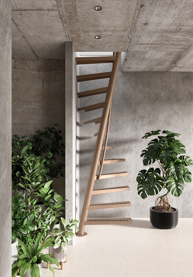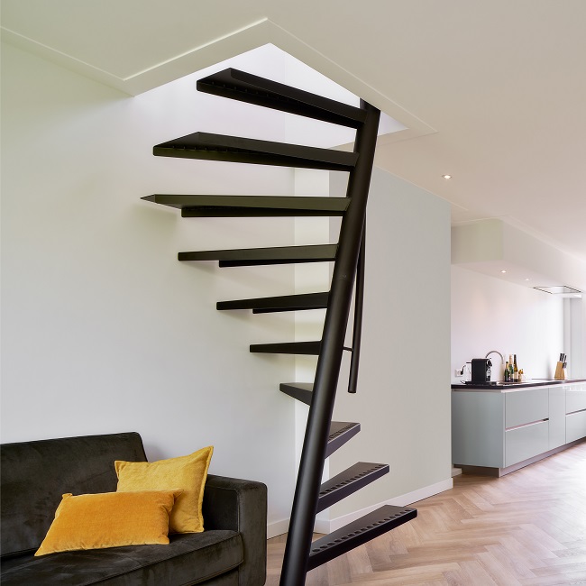 1m² ™, Der Name ist Programm, denn diese ultrakompakte Wendeltreppe von EeStairs benötigt nur einen Quadratmeter Platz