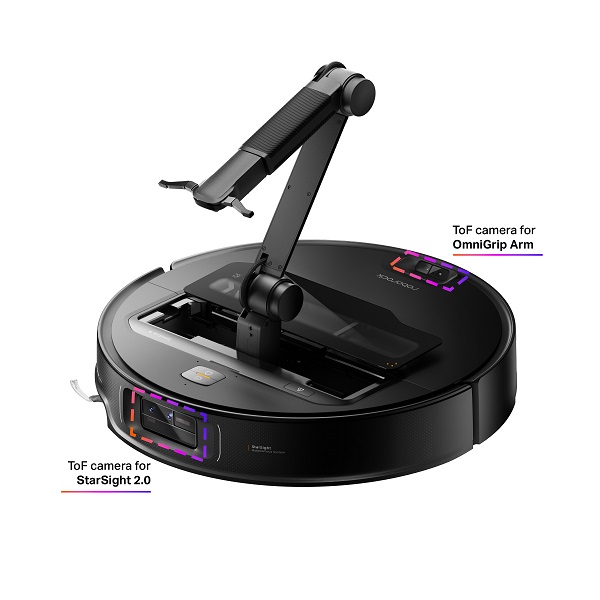 Infineon’s REAL3 Time-of-Flight, jointly developed with pmd, enables a next level of navigation and object recognition of robot cleaners with best-in-class performance and space efficiency. The technology is 100 times smaller compared to conventional laser distance scanner freeing up space for the integration of the retractable robot arm while maintaining a sleek and slim design, marking a significant advancement in the robotics industry. Furthermore, the integration of an additional Time-of-Flight camera from Infineon guarantees the precise and smooth operation of the robot arm, significantly enhancing the capabilities of the Roborock Saros Z70. For customers, this translates into increased benefits when using the robotic vacuum for home cleaning, as the robot arm can now move blocking objects and clean areas that used to be inaccessible.
