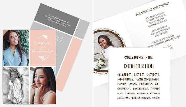 Für Jugendliche ist die Konfirmation als Bestätigung der Taufe ein ganz besonderer Tag in ihrem christlichen Leben. Eltern achten in jedem Detail darauf, diesen in feierlicher Würde zu begehen. „Meine Kartenmanufaktur“ bietet speziell für diesen Anlass eine Auswahl von Konfirmationskarten an – im zeitgemäßen Design, das mit eigenen Fotos und Texten gewünscht personalisiert werden kann.