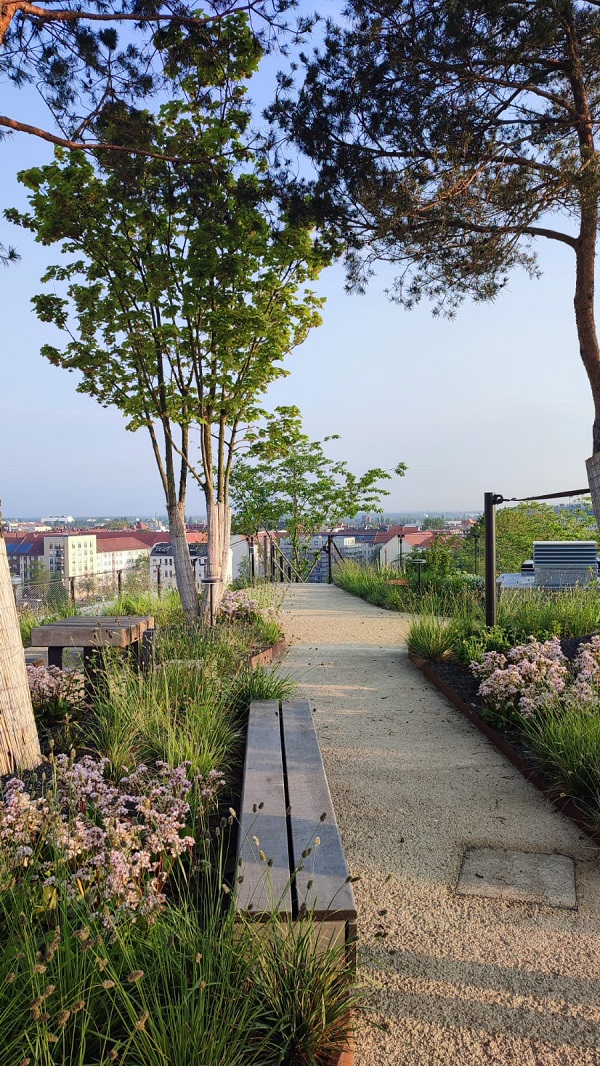 Optigrün zeigt mit Projekten wie dem AERA in Berlin Charlottenburg, wie moderne Technik und durchdachte Planung eine echte Wirkung entfalten können: Bis zu 99 % des Regenwassers lassen sich durch smarte Retentionsdächer lokal zurückhalten – Wasser, das zur Kühlung der Stadt beiträgt und Kanalisationen entlastet.