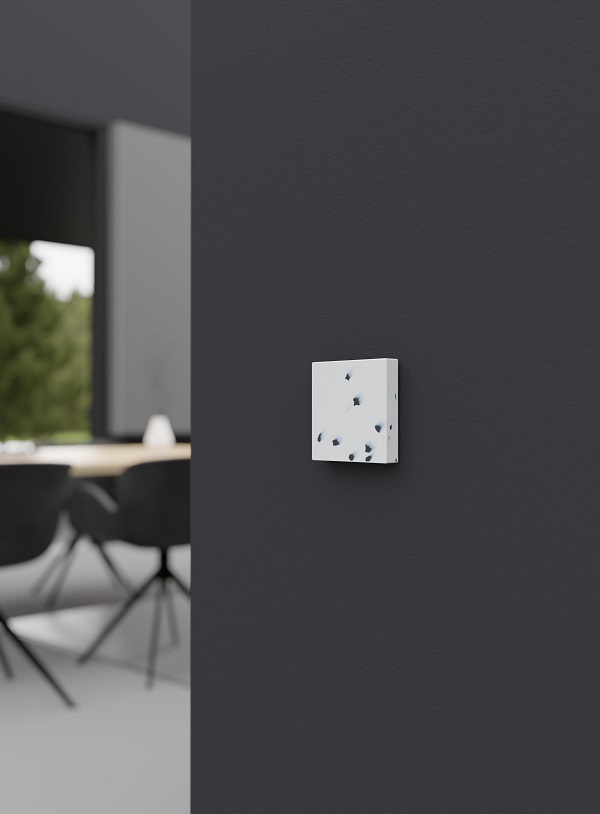 rocr ist in einer Vielzahl von Farbvarianten erhältlich und ermöglicht dadurch eine besonders harmonische Integration in jedes individuelle Raumkonzept. Von kräftigen Tönen wie Harmonierot, Kosmosschwarz und Ozeanblau über sanfte Nuancen wie Gebirgsweiß, Dünenwind oder Wohlfühlgreige bis hin zu einzigartigen, charaktervollen Editionen wie Konfettischwarz und Smaragdgrün – jede Variante setzt einen eigenen gestalterischen Akzent. Diese breite Auswahl macht es einfach, den Taster passend zum persönlichen Stil und zum bestehenden Interior auszuwählen und somit nicht nur als technisches Element, sondern auch als ästhetisches Highlight einzusetzen. Dabei gleicht kein rocr dem anderen, da jede Variante eine eigene Vergangenheit mit sich bringt. Der Taster in kosmosschwarz besteht beispielsweise aus Material von Kühlschränken und Computermäusen, während im Konfettischwarz Kunststoff von farbigem Einweggeschirr verarbeitet ist. Die Materialzusammensetzung kreiert für jeden rocr ein anderes Farbenspiel und setzt die Ausgangsmaterialien in einen neuen Zusammenhang.