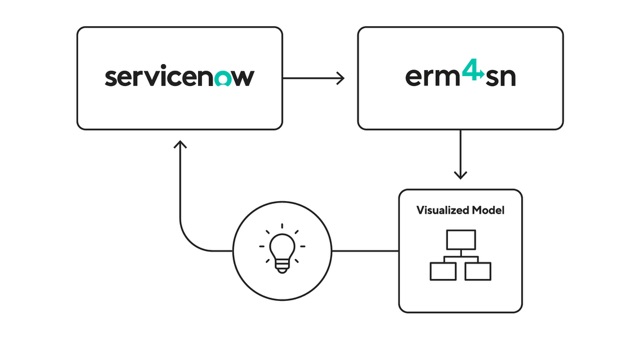 erm4sn wandelt Rohdaten aus ServiceNow in eine visuelle Übersicht des Datenmodells um - nutzbar für Integration, Entwicklung und Management, ganz ohne ServiceNow Admin-Rechte.